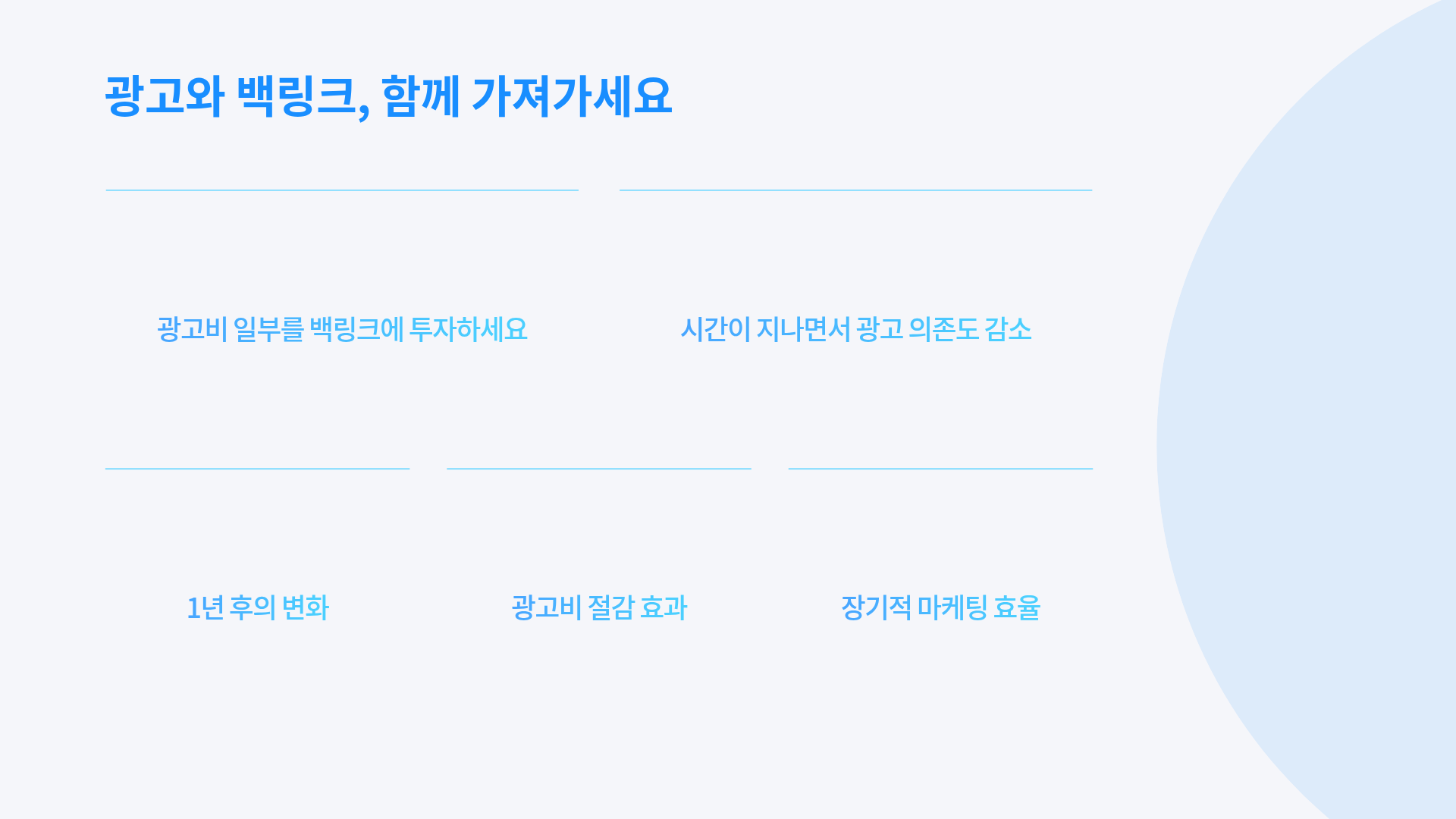 광고와 백링크를 함께 가져가면서, 점진적으로 광고 의존도를 줄여보세요.