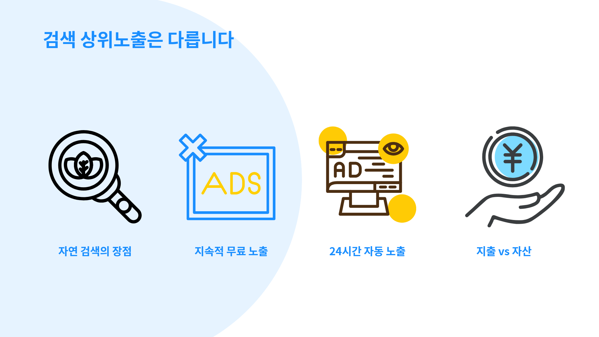 자연 검색 결과 상위에 올라가면, 광고비 없이 지속적으로 노출됩니다.