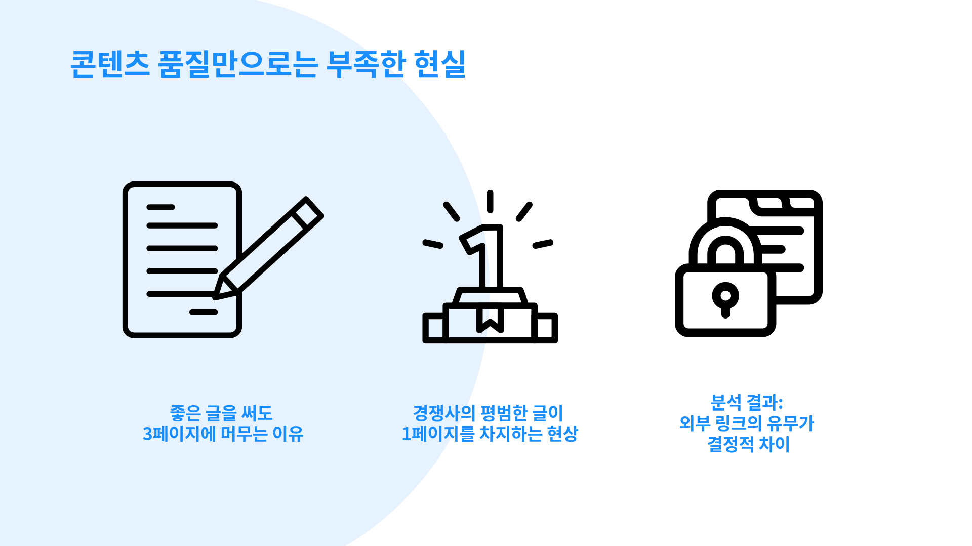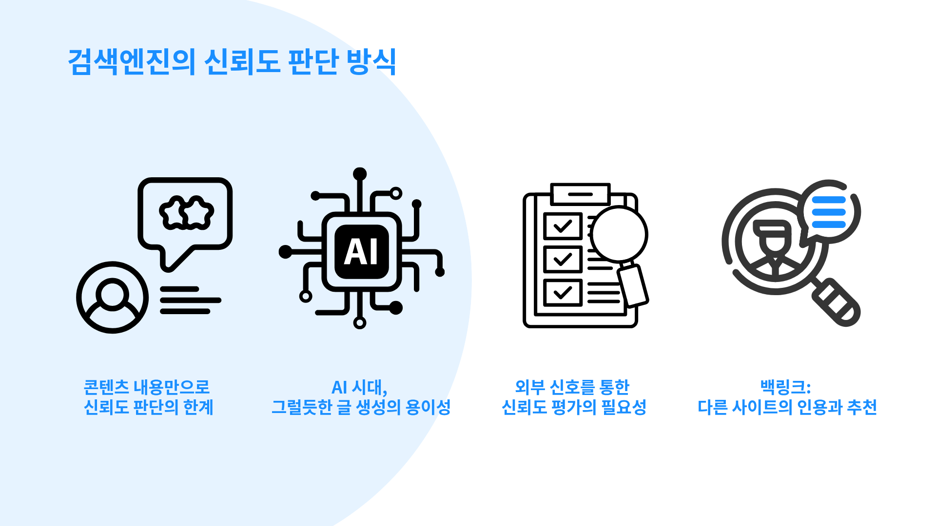 검색 순위, 특히 경쟁이 있는 키워드에서 상위에 올라가려면 콘텐츠 품질과 함께 외부 신뢰 신호가 필요합니다.