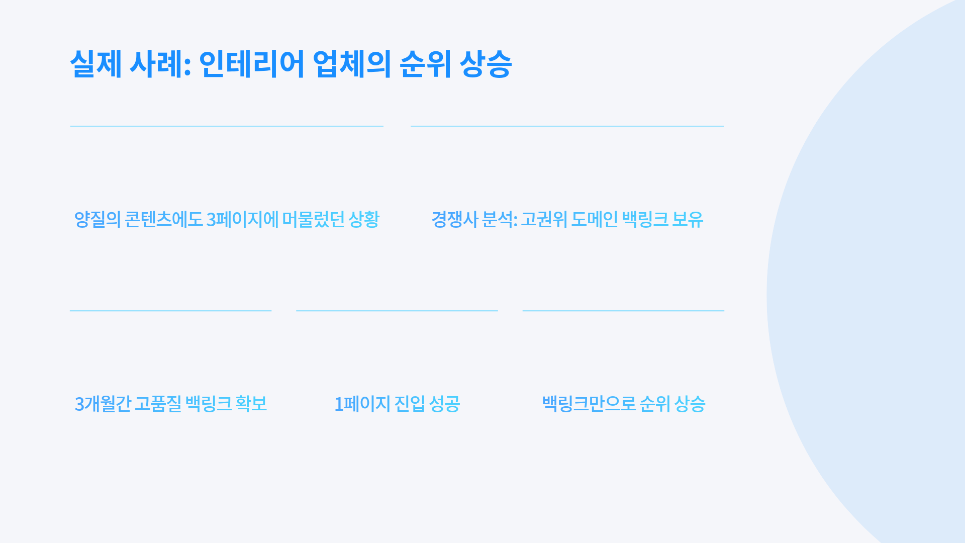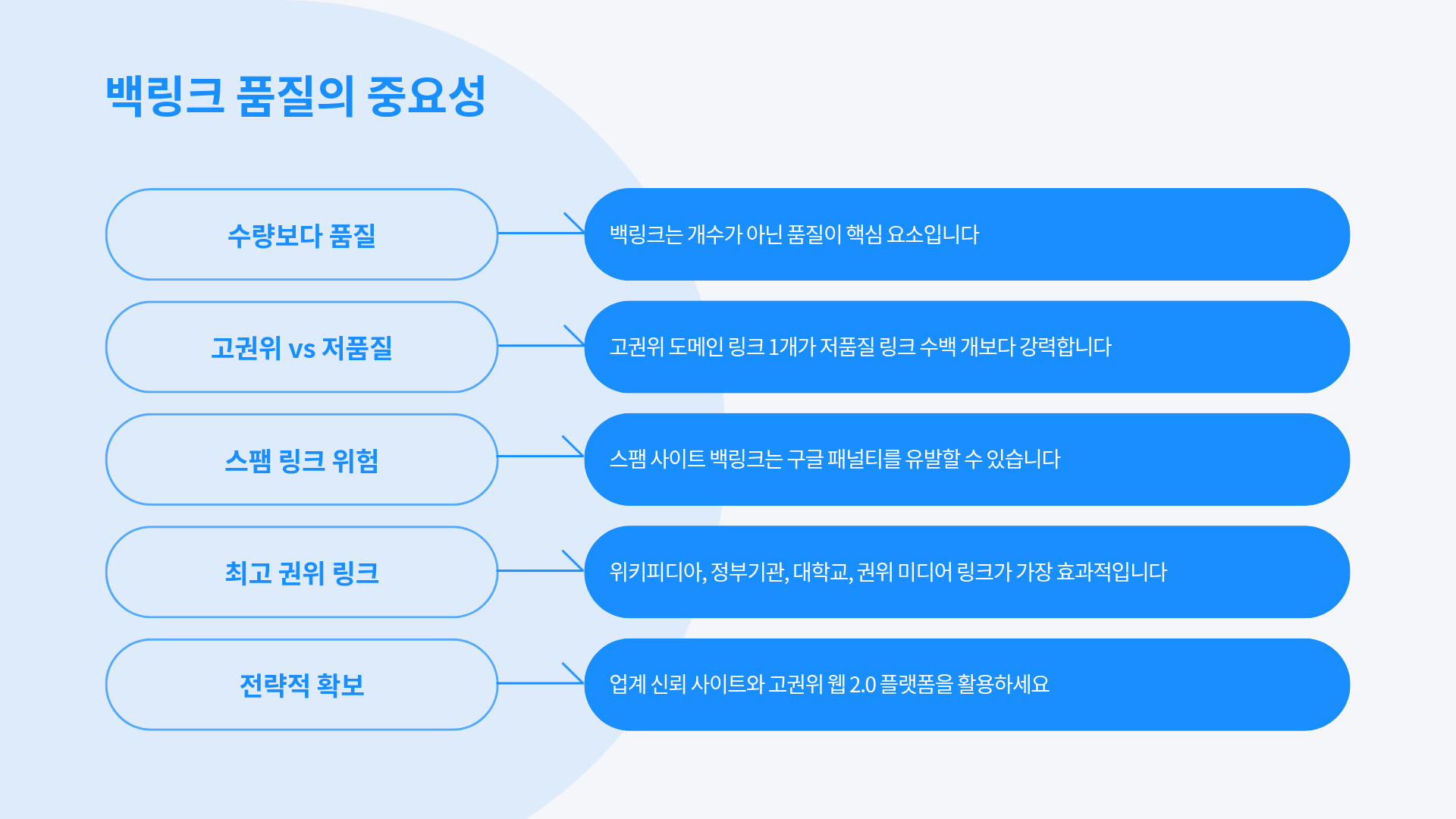 그래서 전략적으로 고품질 백링크를 확보하는 것이 효율적인 접근입니다.
