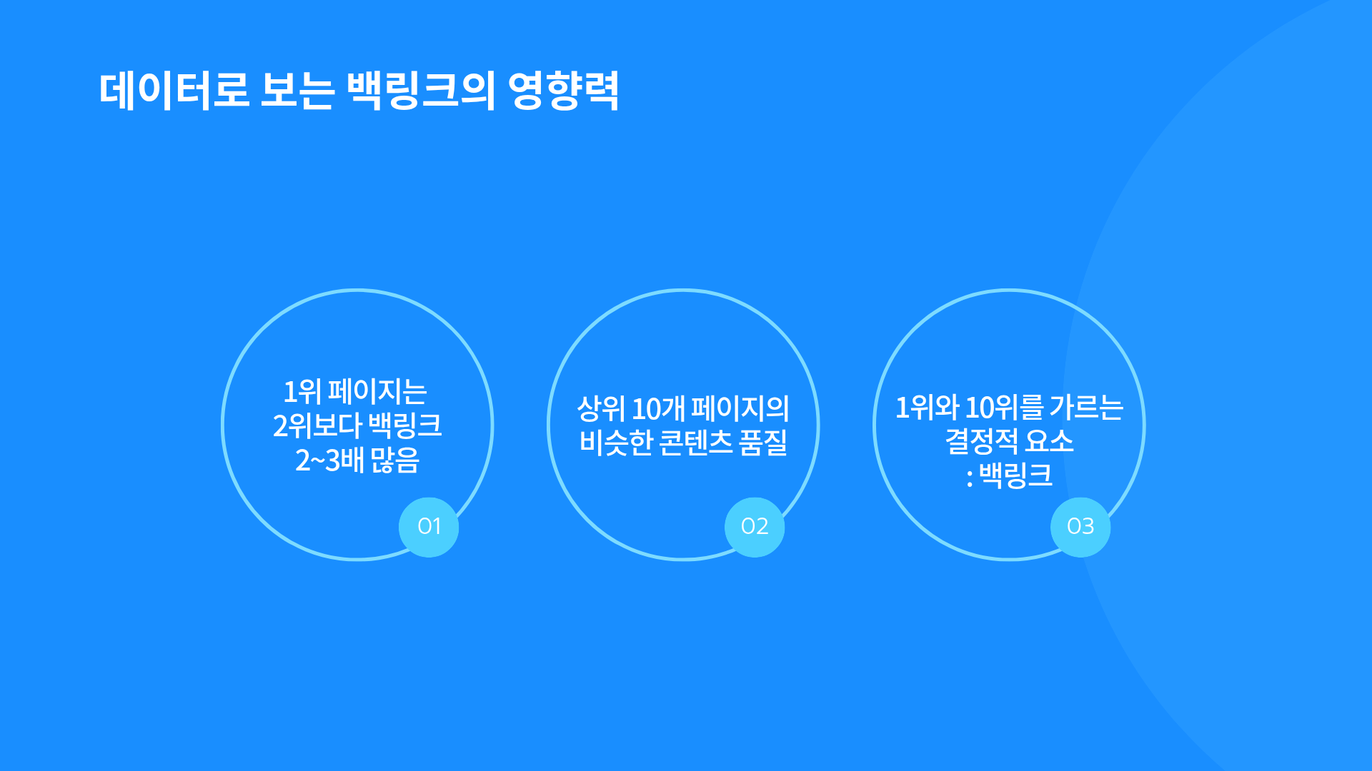 검색 순위 1위 페이지는 평균적으로 2위 페이지보다 백링크 수가 2~3배 많습니다.