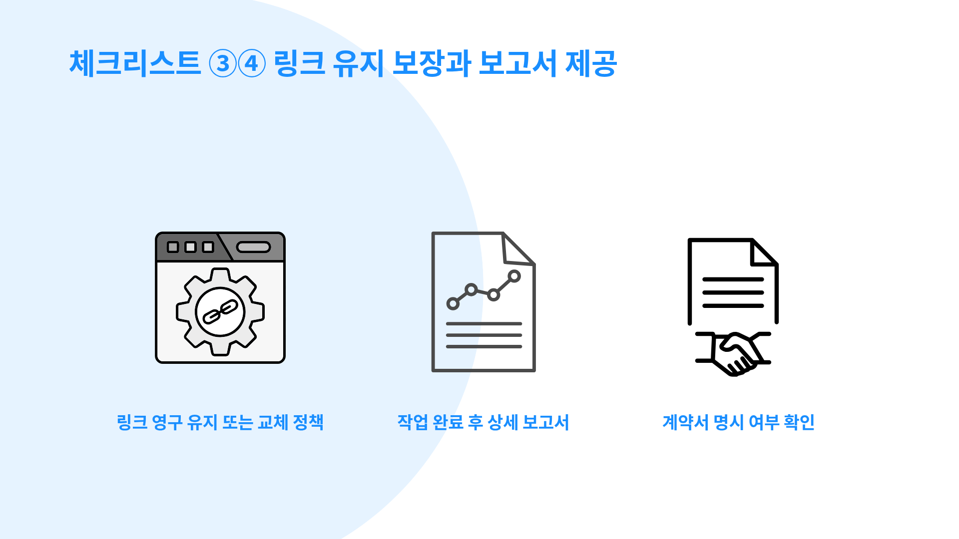링크 유지 및 교체 정책도 계약 단계에서 명확하게 안내합니다.