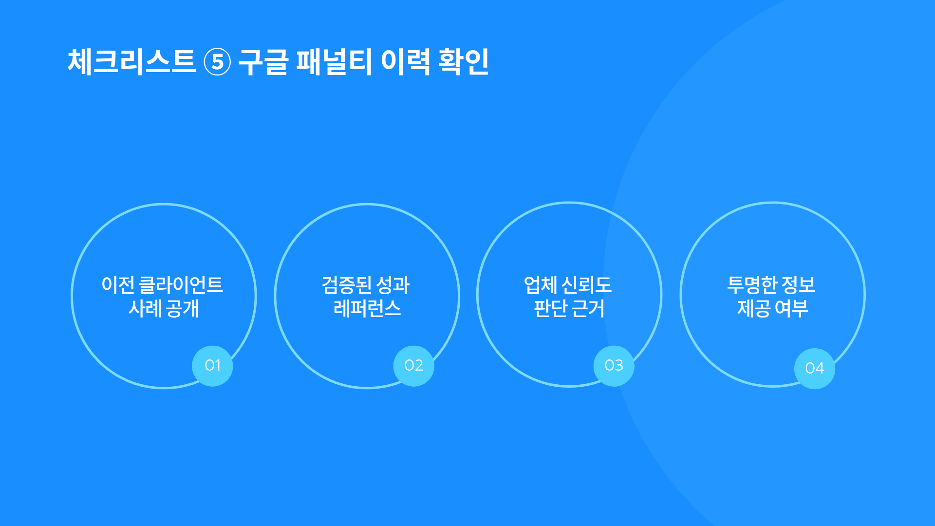 이전 클라이언트 사례나 레퍼런스를 투명하게 공개하는지 살펴봅니다.