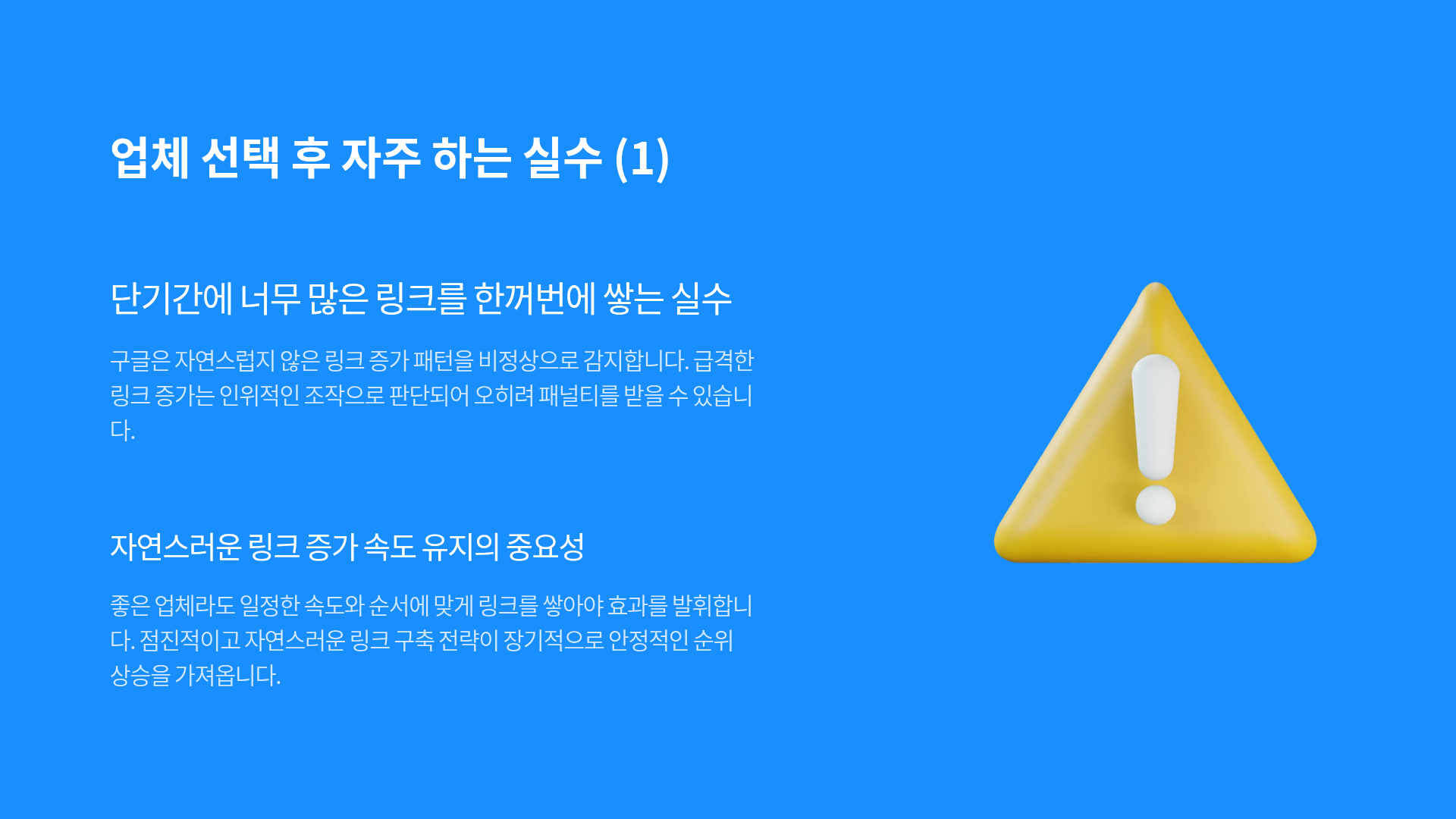 가장 흔한 실수는 단기간에 너무 많은 링크를 한꺼번에 쌓는 것입니다.