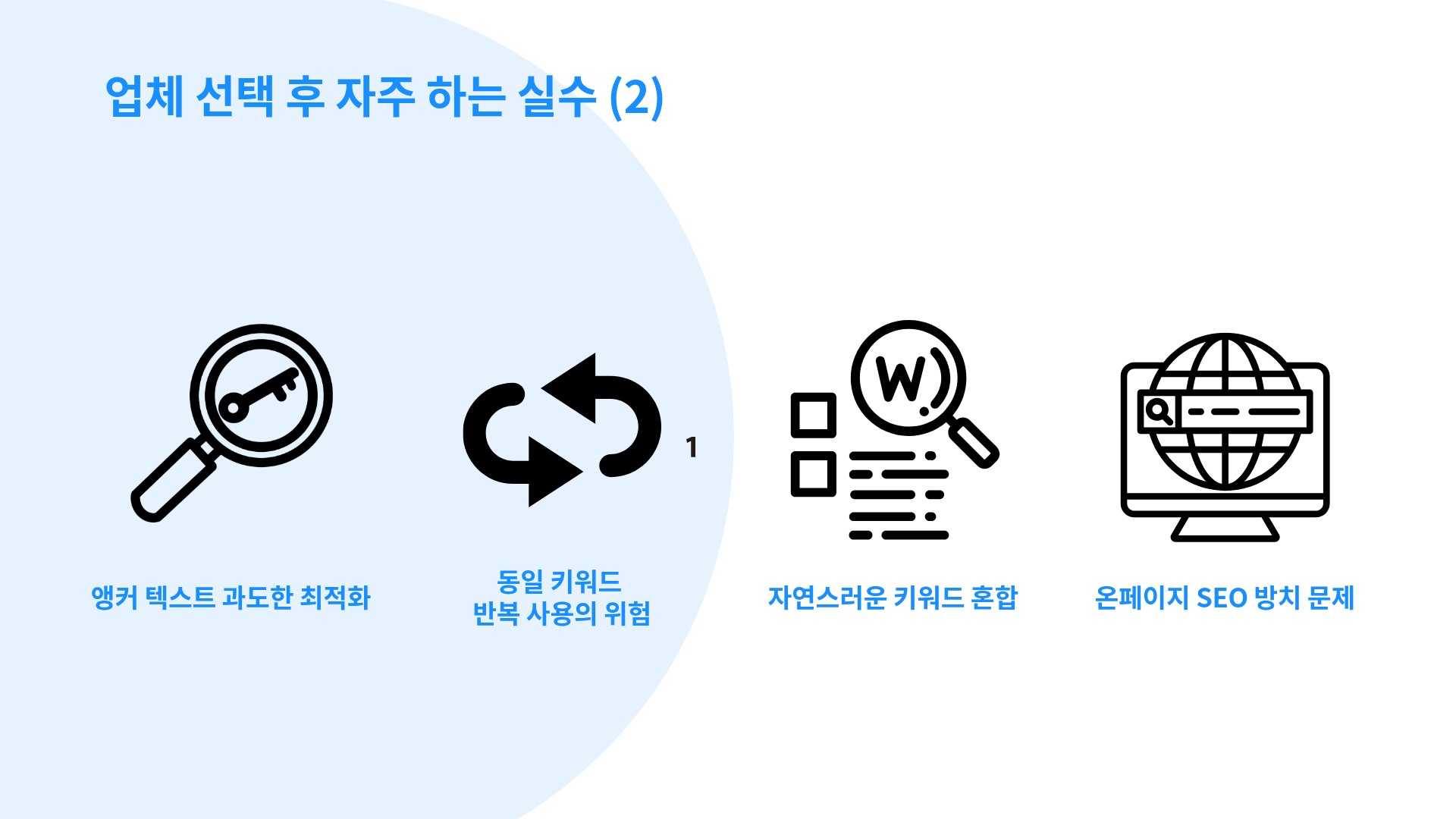 오히려 검색 순위 하락, 트래픽 감소, 유입 트래픽 저하 등 부정적인 결과를 초래합니다.