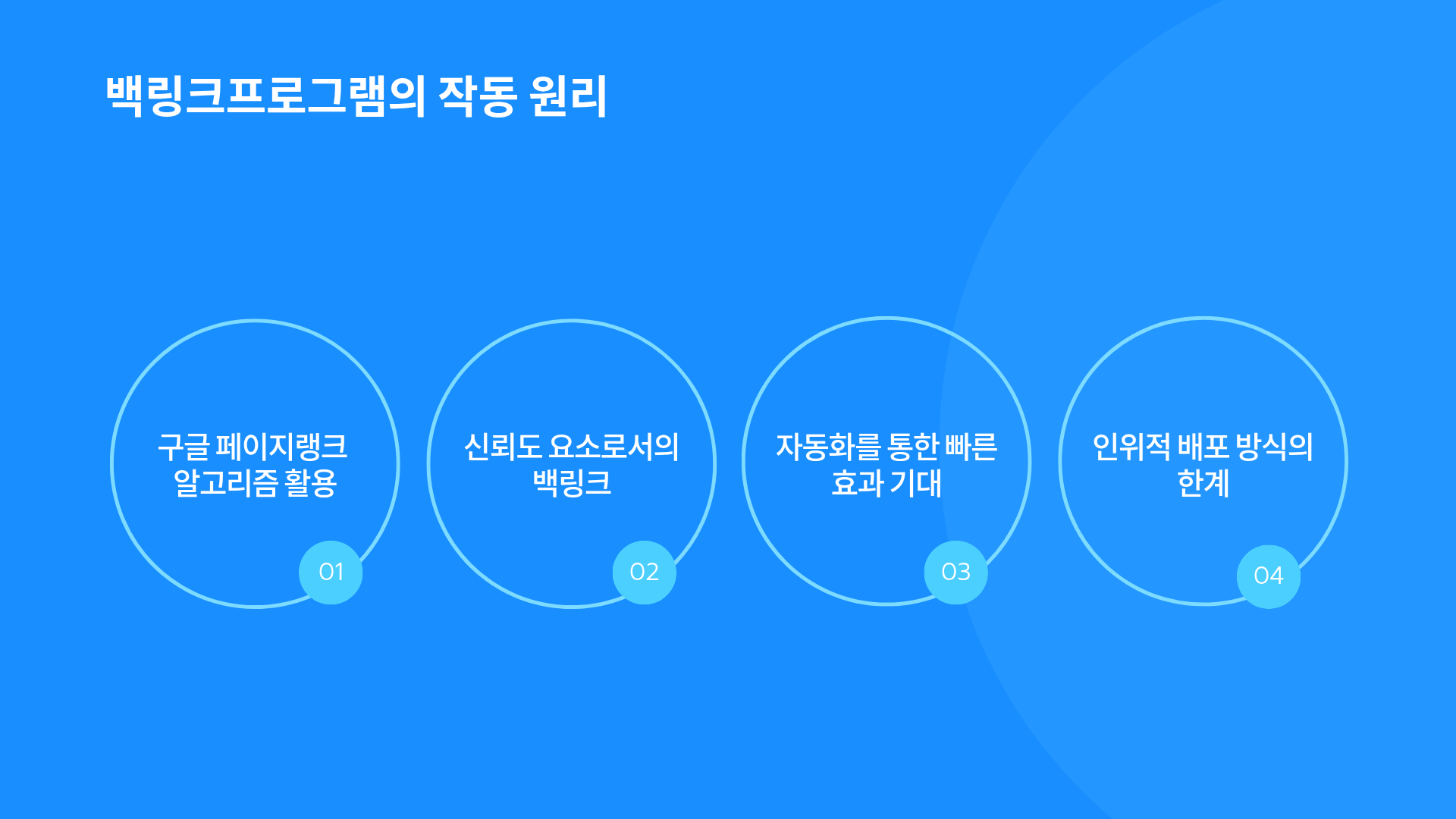 백링크 프로그램은 이 원리를 자동화하여 빠른 효과를 기대할 수 있지만, 인위적이고 자동화된 배포 방식은