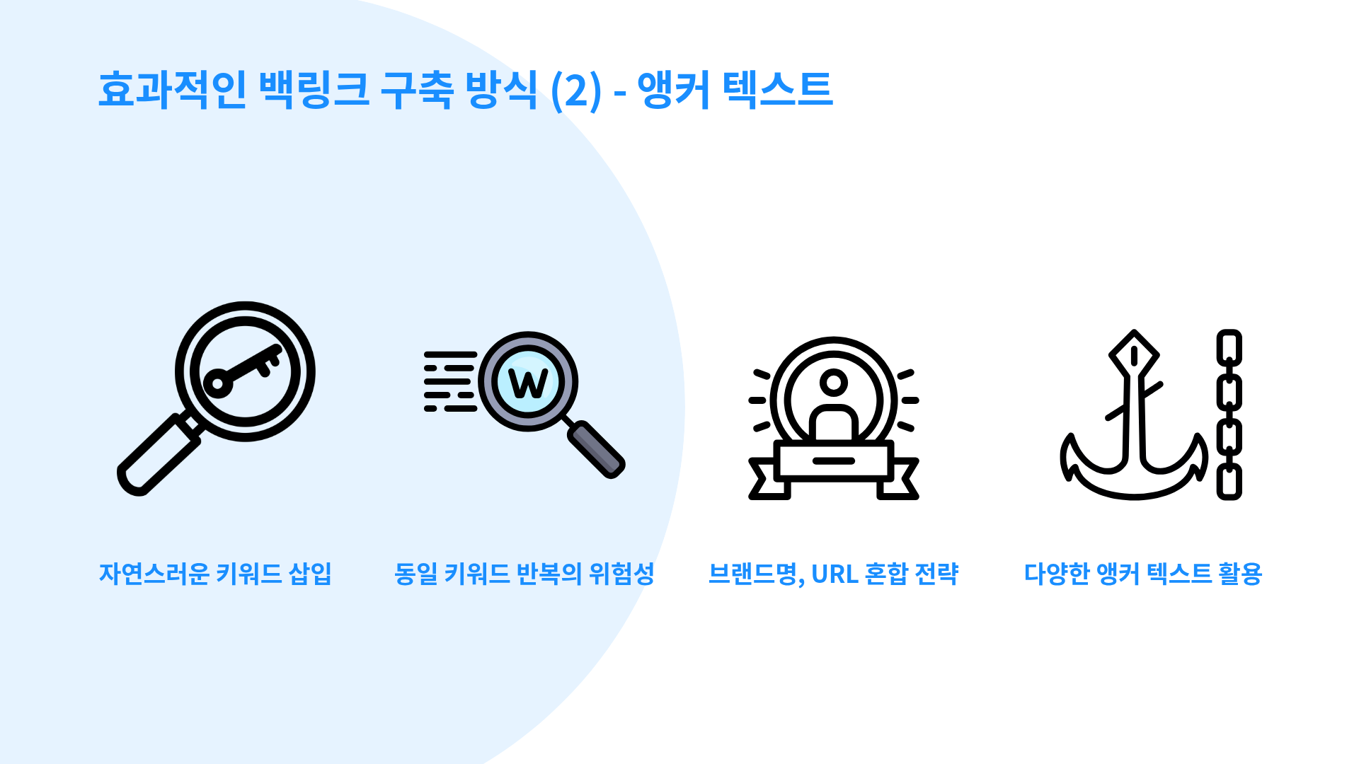 모든 백링크의 앵커 텍스트가 동일한 키워드로 반복되면 구글은 이를 인위적 패턴으로 감지하여 신뢰도를 낮출 수 있습니다. 브랜드명, URL 직접 표기, 관련 문구 등 다양한 키워드와 앵커 텍스트를 혼합하여 콘텐츠 내에 자연스럽게 삽입하는 방법이 필요합니다.
