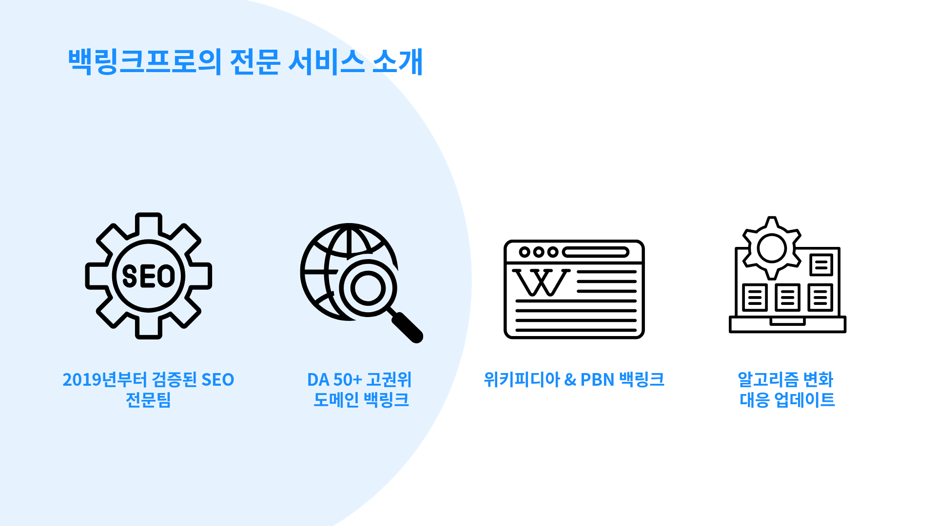 백링크프로는 2019년부터 구글·네이버 SEO 전문팀이 운영하는 자체 인프라를 통해 고품질 백링크 작업을 제공합니다.