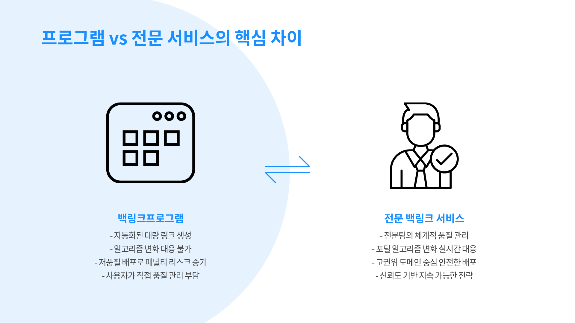백링크 구축을 마케팅프로그램이나 자동화된 프로그램에 맡기는 것과 전문 서비스에 맡기는 것의 핵심 차이는
