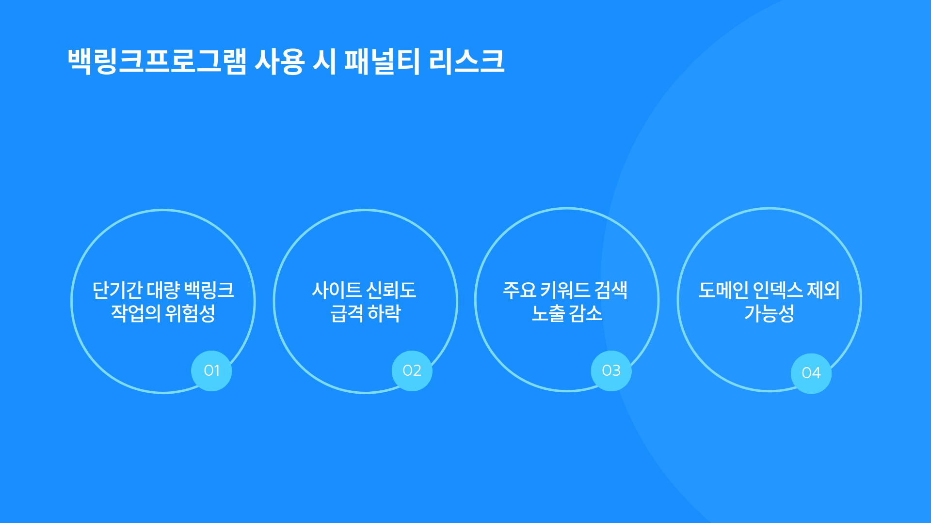 사이트의 신뢰도가 급격히 하락하고 주요 키워드의 검색 노출이 크게 줄어드는 경우가 많습니다.