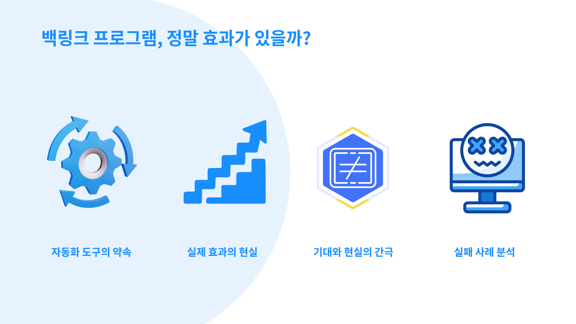이 글에서는 백링크프로그램의 실제 작동 방식과 구글 SEO에서의 리스크, 그리고 콘텐츠와 마케팅 중심의