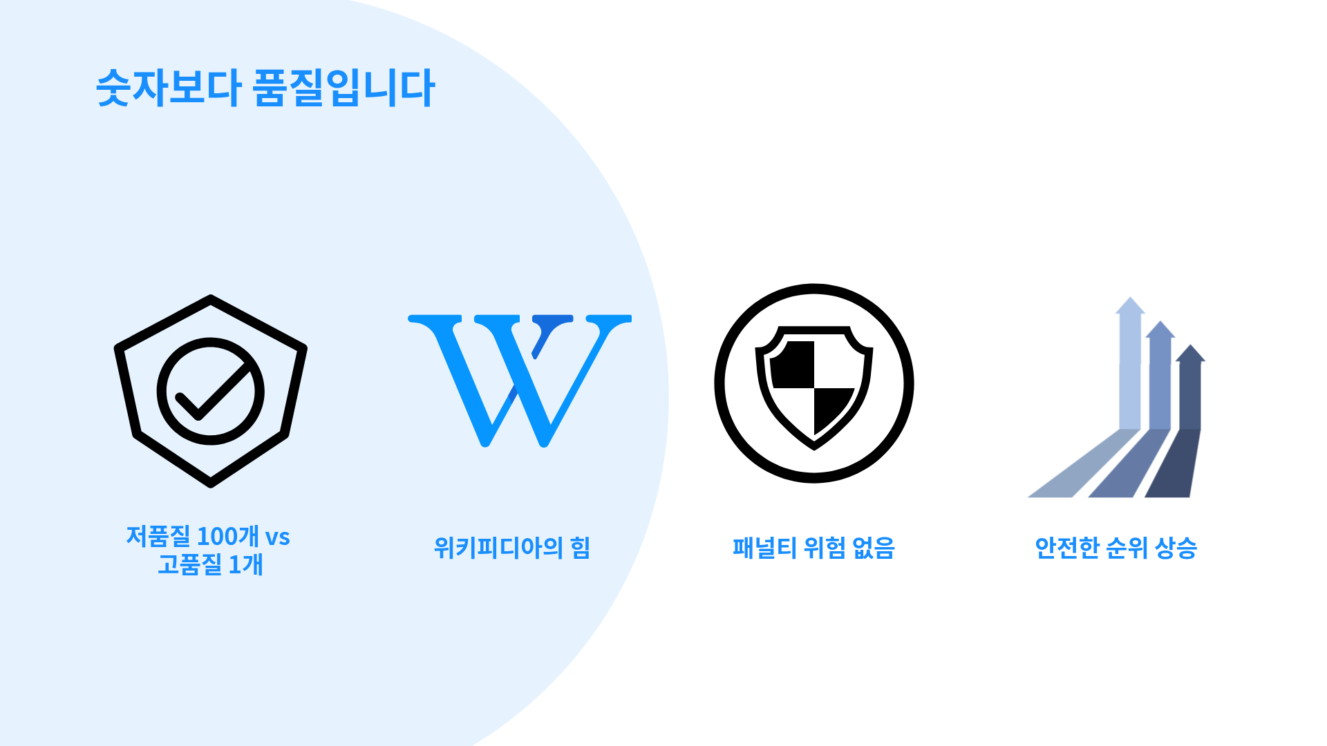 그리고 더 중요한 건, 고품질 링크는 패널티 위험이 없다는 겁니다. 안전하게 순위를 올릴 수 있어요.