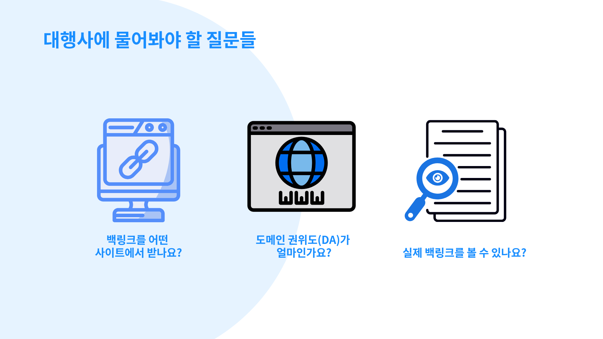 "백링크를 어떤 사이트에서 받나요?" 구체적인 사이트 예시를 물어보세요.