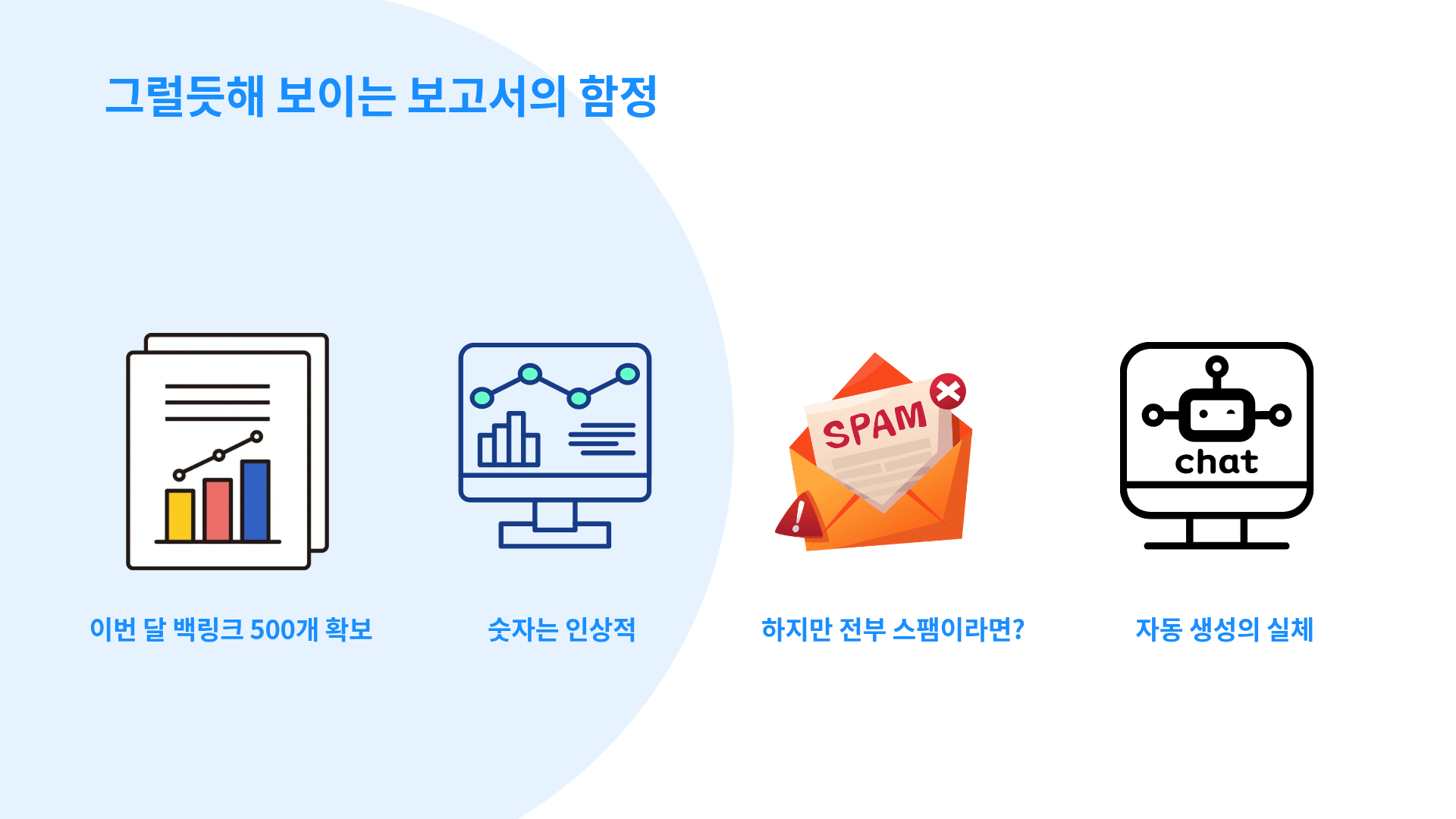 "이번 달 백링크 500개 확보." 숫자는 그럴듯해 보입니다.